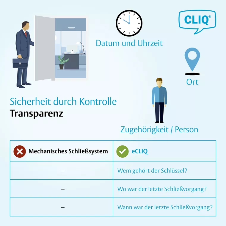eCLIQ basiert auf einem ganzheitlichen Sicherheitsansatz, der drei wesentliche Aspekte berücksichtigt: