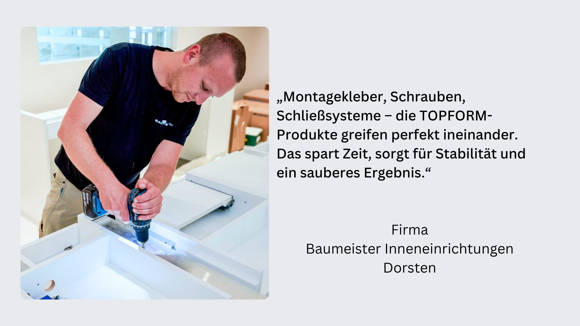 Als Zusammenschluss von 13 bedeutenden Baubeschlag-Fachhändlern steht TOPFORM für Qualität, Innovation und eine enge Partnerschaft mit dem Handwerk.